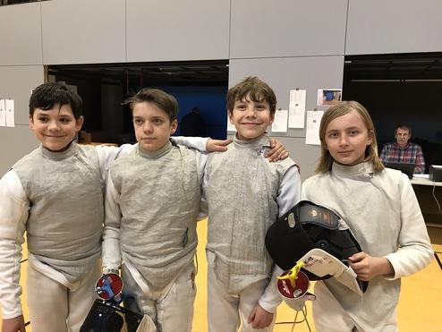 In der Altersklasse U13 traf das MTV-Quartett mit Matthes Hagen Koch, Fritz Kraft, Aaron Krüger und Jasper Wolf im Finale auf Eintracht Hildesheim. Bis zum vorletzten Gefecht war der Kampf sehr ausgeglichen. Dann stellte Jasper Wolf mit 6:1-Treffern die Weichen auf Sieg und Matthes Koch sicherte mit einem 5:4 den 45:40 Landestitel. Der Sieg im Mannschaftswettbewerb war nach den mäßigen Einzelplatzierung nicht zu erwarten und machte das MTV-Quartett glücklich. Im Einzelwettbewerb war Fritz Kraft auf Platz Acht bester Braunschweiger. Matthes Koch und Aaron Krüger waren mit den Plätzen 11 bzw. 13 nicht zufrieden. Umso mehr freuten sie sich über den Mannschafts-Sieg und die Qualifikation für die Deutschen Meisterschaften.