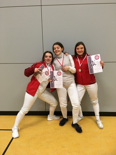 Die Mädchen-Mannschaft mit Maja Acalski, Mia Arbogast und Ella Kraft stand im Finale gegen die Startgemeinschaft Eintracht Hildesheim/BW Bucholz neben sich und unterlag deutlich mit 18:45. Nach kurzer Zeit hatten sie die Niederlage verdaut und freuten sich dann doch über die Silbermedaillen. Mia Arbogast wurde im Einzelwettbewerb Dritte, Maja Acalski Sechste und Ella Kraft Elfte. Mia und Maja haben weiter gute Chancen für die DM-Qualifikation.